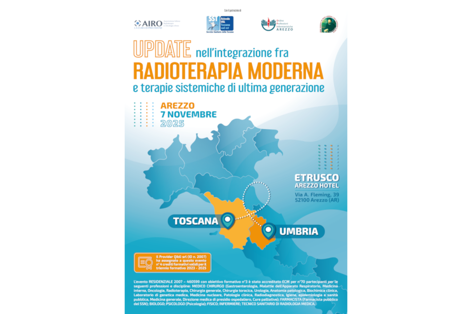 RADIOTERAPIA DI PRECISIONE E ADATTIVA NEL NSCLC STADIO III NON RESECABILE Webinar ECM Descrizione del Corso: Corso gratuito e riservato ai Soci AIRO in regola… Leggi tutto »WEBINAR ECM I VENERDI’ DI AIRO – RADIOTERAPIA DI PRECISIONE E ADATTIVA NEL NSCLC STADIO III NON RESECABILE – 31 Ottobre 2025