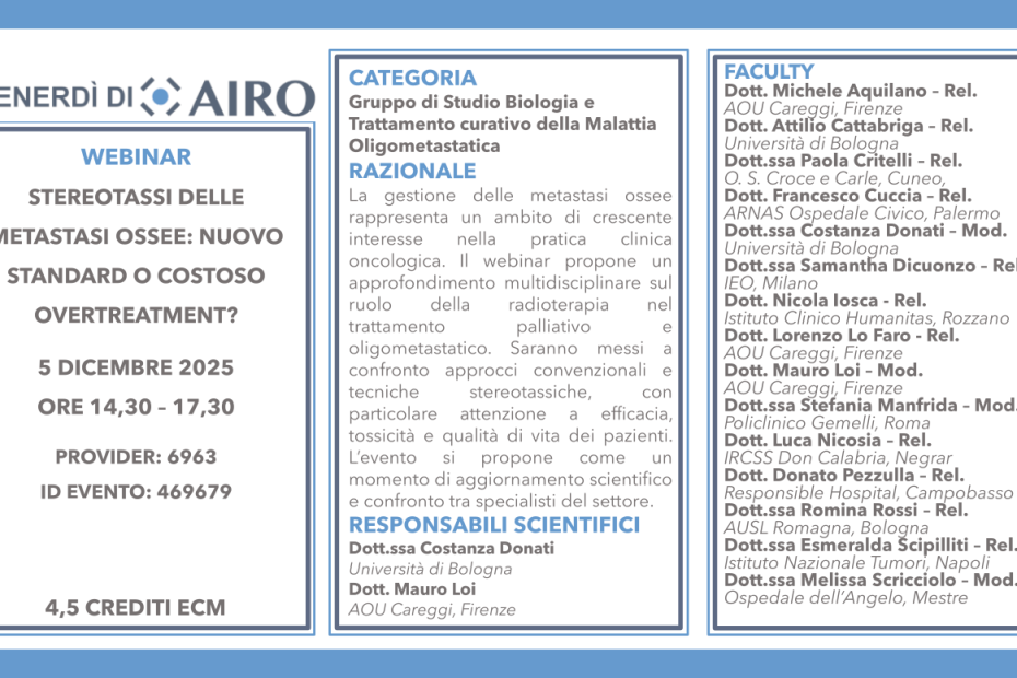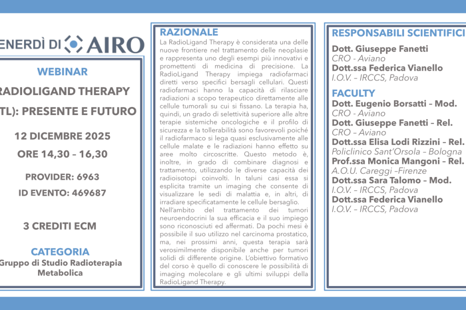 WEBINAR ECM I VENERDI’ DI AIRO – RADIOLIGAND THERAPY (RTL): PRESENTE E FUTURO – 12 Dicembre 2025