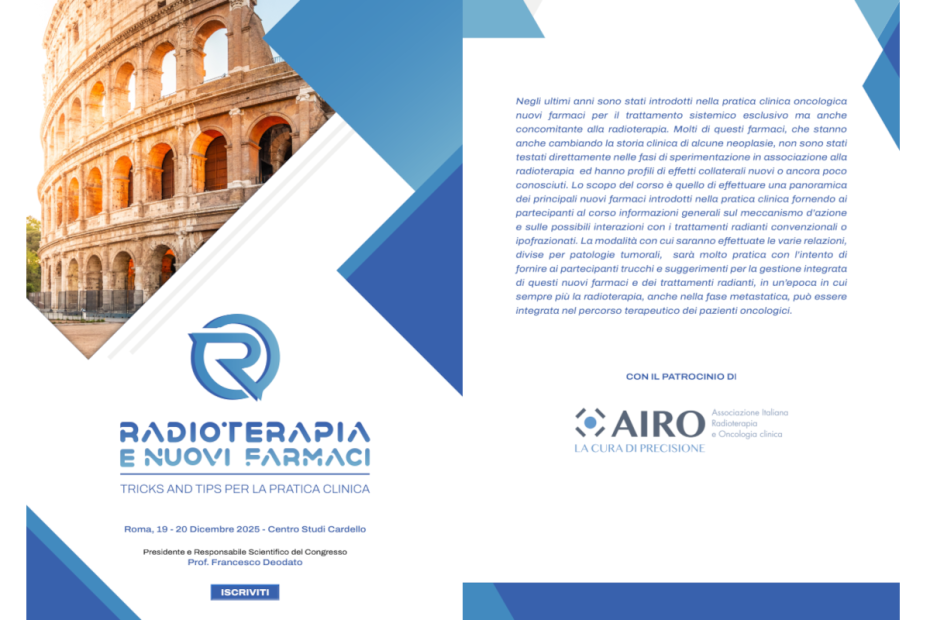 WEBINAR ECM I VENERDI’ DI AIRO – WORKFLOW DELLA RE-IRRADIAZIONE: DALL’INDICAZIONE CLINICA ALLE CARATTERISTICHE TECNICHE DEL TRATTAMENTO RADIOTERAPICO – 30 Maggio 2025